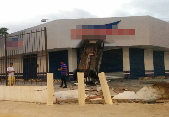Um automóvel amanheceu o domingo (26) na fachada de uma farmácia, no bairro do Calhau, emão Luís-MA. O acidente de trânsito aconteceu na madrugada, por volta das 3h, na avenida dos Holandeses, próximo à rotatória do bairro. O automóvel, uma picape de modelo Strada, ‘voou’ em direção ao estabelecimento, após o motorista perder o controle. Os ocupantes do veículo saíram com ferimentos leves.