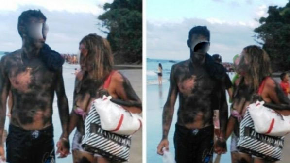 Moradores da comunidade Prainha Branca, no Guarujá (SP), pintaram um casal de turistas que pichou as rochas de uma praia do litoral paulista. Os banhistas tiveram os corpos cobertos de tinta preta e foram hostilizados nas areias da praia, depois de picharem nas pedras a sigla “ABC”, supostamente uma referência à região onde moram na Grande São Paulo.