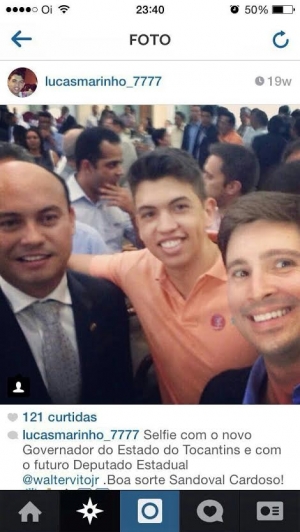 Do lado governista destacam que Douglas Shimitt aparece em apostilamento de contrato como representante da Via Dragados em contrato celebrado com governo, por meio do Departamento de Estradas de Rodagem do Tocantins (Dertins), quando o órgão era presidido pelo pai de Marcelo Miranda. Já do lado peemedebista, internautas destacam os dizeres dos suspeitos ao lado dos integrantes da base siqueirista. “Um novo caminho! Próxima parada Ananás-TO”, escreve Douglas ao lado de Eduardo Siqueira. Lucas Marinho está em outra foto com o governador Sandoval, com a frase: “Selfie com o novo governador do Estado do Tocantins”.
