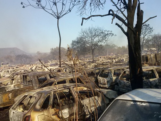 Pelo menos 300 carros ficaram destruídos durante um incêndio que atingiu um pátio de veículos apreendidos em Palmas, segundo o Corpo de Bombeiros. O local é de responsabilidade da Secretaria de Segurança Pública do Tocantins (SSP). O pátio fica ao lado da Casa de Prisão Provísoria de Palmas (CPP), que abriga cerca de 500 detentos, na região sul da capital. De acordo com os Bombeiros, o incêndio teria começado há cerca de uma semana na Serra do Lajeado. As chamas passaram pela vegetação ao redor do cemitério Jardim das Acácias, do Quartel do Exército e atingiram o pátio por volta das 14h20 desta quinta-feira (13).