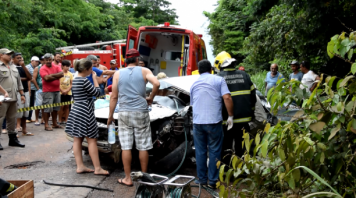 Um acidente por volta do meio dia de ontem, na BR-153, entre os municípios de Nova Rosalândia e Oliveira de Fátima, envolveu três veículos, sendo uma moto Honda CG 125, com duas mulheres; um veículo Toyota/Corolla com três ocupantes e uma carreta de transporte de combustível.