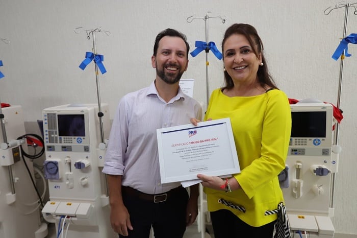 Após a entrega dos equipamentos, Marcos Alexandre convidou a senadora Kátia Abreu para conhecer as instalações do prédio e os serviços prestados pela instituição. Ao final da visita a senadora recebeu o certificado “Amigo da Pró-Rim”, que foi entregue pelo diretor-presidente da instituição.