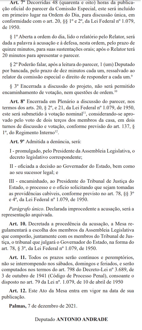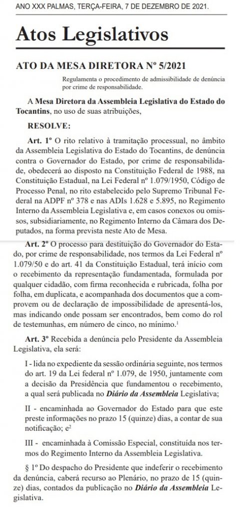 Publicidade Publicidade Bastidores Conheça o rito do impeachment de Carlesse By Folha do Bico 8 de dezembro de 2021 0 312 Share WhatsAppPrintTelegramFacebookTwitterCopy URL Folha do Bico Noticias Relacionadas ATM lamenta morte de José Bonifácio e destaca legado municipalista 1 de dezembro de 2025 Dr. Castro surge como novo nome e anuncia pré-candidatura a deputado federal no Tocantins 1 de dezembro de 2025 Vicentinho Júnior amplia marca de investimentos e entrega duas creches aguardadas há anos no Tocantins 1 de dezembro de 2025 Share WhatsAppPrintTelegramFacebookTwitterCopy URL Previous articleLeia a denúncia completa que desencadeou a abertura de impeachment contra CarlesseNext articlePALMAS: Serviços da BRK continuam péssimos e voltam a deixar capital sem água - Advertisement - - Advertisement - Ultimas noticias AUGUSTINÓPOLIS: Vigilante de abrigo é preso suspeito de abusar duas crianças 4 de dezembro de 2025 SÃO MIGUEL: Lixão é fechado e passa a ter acesso controlado sob novas diretrizes ambientais 4 de dezembro de 2025 ARAGUATINS: Insatisfeitos, Abmael, Chico Moura e Rafael Oliveira passam a votar com a oposição e complicam gestão Aquiles 4 de dezembro de 2025 ARAGUATINS: Com voto decisivo e comando da oposição, Airton se torna principal contraponto à gestão Aquiles 4 de dezembro de 2025