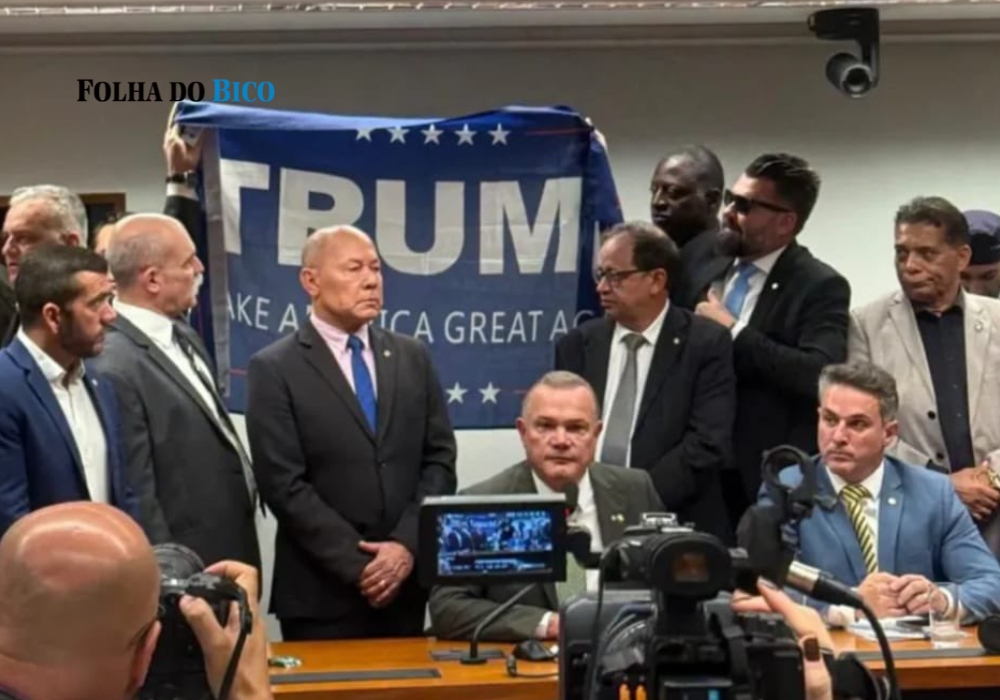 O deputado federal Delegado Caveira (PL-PA) protagonizou um momento inusitado durante uma entrevista coletiva realizada por parlamentares da oposição na Câmara dos Deputados, na manhã desta segunda-feira (22). O parlamentar paraense exibiu uma bandeira em apoio ao presidente dos Estados Unidos, Donald Trump, gesto que gerou constrangimento entre colegas de bancada.