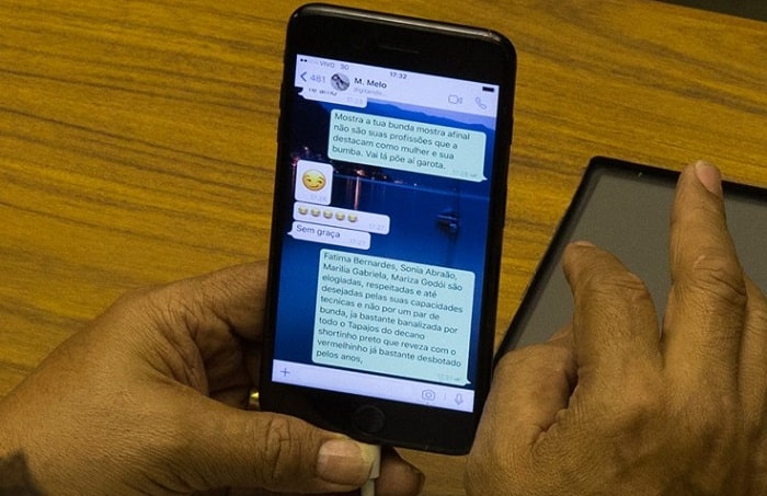 No bate-papo, além de pedir imagens pornográficas, o parlamentar citou apresentadoras de TV como exemplos de inteligência como Fátima Bernardes e Marília Gabriela. (Metro1)