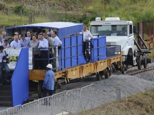 A presidenta Dilma Rousseff percorreu nesta quinta-feira, 15, em um tipo de vagão chamado de auto de linha, usado para inspecionar trilhos, um trecho da Ferrovia Norte-Sul, na cidade de Anápolis, em vistoria às obras. A visita, que durou cerca de 20 minutos, também foi acompanhada pelo governador de Goiás, Marconi Perillo, e pelos ministros do Planejamento, Miriam Belchior, e dos Transportes, Paulo Sérgio Passos.