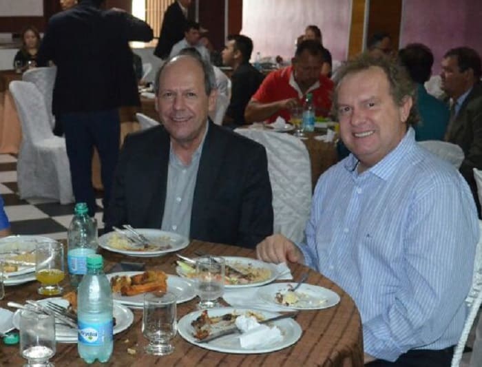 Após a sessão anual realizada em Miracema nesta quinta-feira, 7, prevista na Constituição do Estado e no Regimento Interno da assembleia Legislativa, em homenagem pela cidade ter sediado a primeira capital do estado, o prefeito de Araguaína, Ronaldo Dimas (PR) e o presidente da AL, Mauro Carlesse (PHS), almoçaram juntos no banquete pós evento.