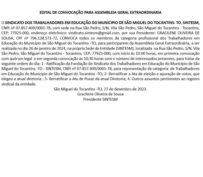 Publicidade Publicidade Geral EDITAL DE CONVOCAÇÃO PARA ASSEMBLEIA GERAL EXTRAORDINÁRIA By Folha do Bico 27 de dezembro de 2023 0 114 Share WhatsAppPrintTelegramFacebookTwitterCopy URL Folha do Bico Noticias Relacionadas Recorte Automático de Vídeo para uma Edição Multiformato Sem Esforço 5 de dezembro de 2025 PREFEITURA DE MAURILÂNDIA DO TO – ATO AVISO DE CONCORRÊNCIA ELETRÔNICA Nº 06/2025 – REPUBLICAÇÃO 2 de dezembro de 2025 PREFEITURA DE MAURILÂNDIA DO TO – ATO AVISO DE CONCORRÊNCIA ELETRÔNICA Nº 05/2025 – REPUBLICAÇÃO 2 de dezembro de 2025 Share WhatsAppPrintTelegramFacebookTwitterCopy URL Previous articleARAGUATINS: Orçamento de 2024 para a Câmara Municipal é estimado em R$ 3,9 milhõesNext articleTermina dia 29 prazo para municípios do Bico preencherem Censo Suas 2023 - Advertisement - - Advertisement - Ultimas noticias Para Nunes Marques, afastamento de Wanderlei era excessivo e violava estabilidade institucional 5 de dezembro de 2025 STF derruba afastamento de Wanderlei Barbosa e governador reassume mandato 5 de dezembro de 2025 AUGUSTINÓPOLIS: Acender das Luzes celebra 4ª edição da Magia do Natal com espetáculo especial nesta sexta-feira 5 de dezembro de 2025 44 mil famílias sem casa. Enquanto isso, a política do Tocantins segue repetindo promessas que nunca saem do papel 5 de dezembro de 2025