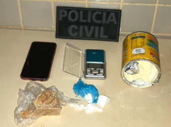 De acordo com a polícia, denúncias informaram que a suspeita havia recebido drogas em um posto de gasolina do município. Com a suspeita, a polícia apreendeu 100 gramas de crack, 20 gramas de cocaína e uma balança de precisão.
