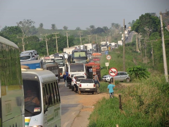 O congestionamento é grande na rodovia. De acordo com manifestantes, veículos pequenos e ambulâncias estão sendo autorizados a passar. Aos demais, está havendo de hora em hora liberação de passagem.