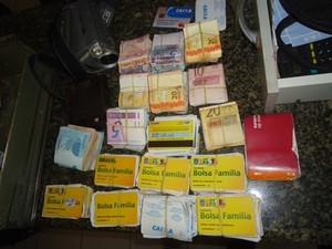 Em posse do suspeito, a polícia encontrou cabo de revólver, equipamentos eletrônicos, jóias, 125 cartões dos bancos Bradesco, Caixa Econômica, Bando do Nordeste e Bolsa Família, além de 304 cheques dos bancos Bradesco, Caixa Econômica Federal, Amazônia, Itaú, Nordeste, Brasil, Real, Unibanco e Hsbc, num total de R$ 407.759,00. Também foi encontrada a quantia de R$ 15.226,35 em espécie, totalizando R$ 422.985,35.