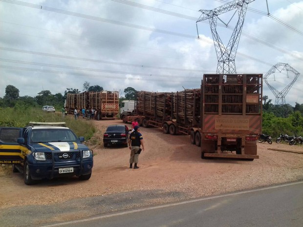 Os índios mantêm um caminhão da concessionária de energia preso e uma das aldeias e duas carretas carregadas de madeiras estacionadas em baixo das linhas de transmissão de energia até o dia que a reunião aconteça.