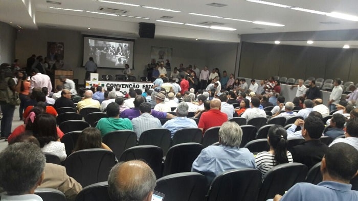 O clima no evento mais parecia um velório. Filiados presentes a Convenção em nenhum momento esboçaram qualquer entusiasmo, mesmo nas falas do governador e do presidente reeleito. Em sua totalidade, compareceram apenas os delegados com direito a voto, o secretariado do Governo do Estado e comissionados, esses últimos são sempre obrigados a comparecer e bater palmas.