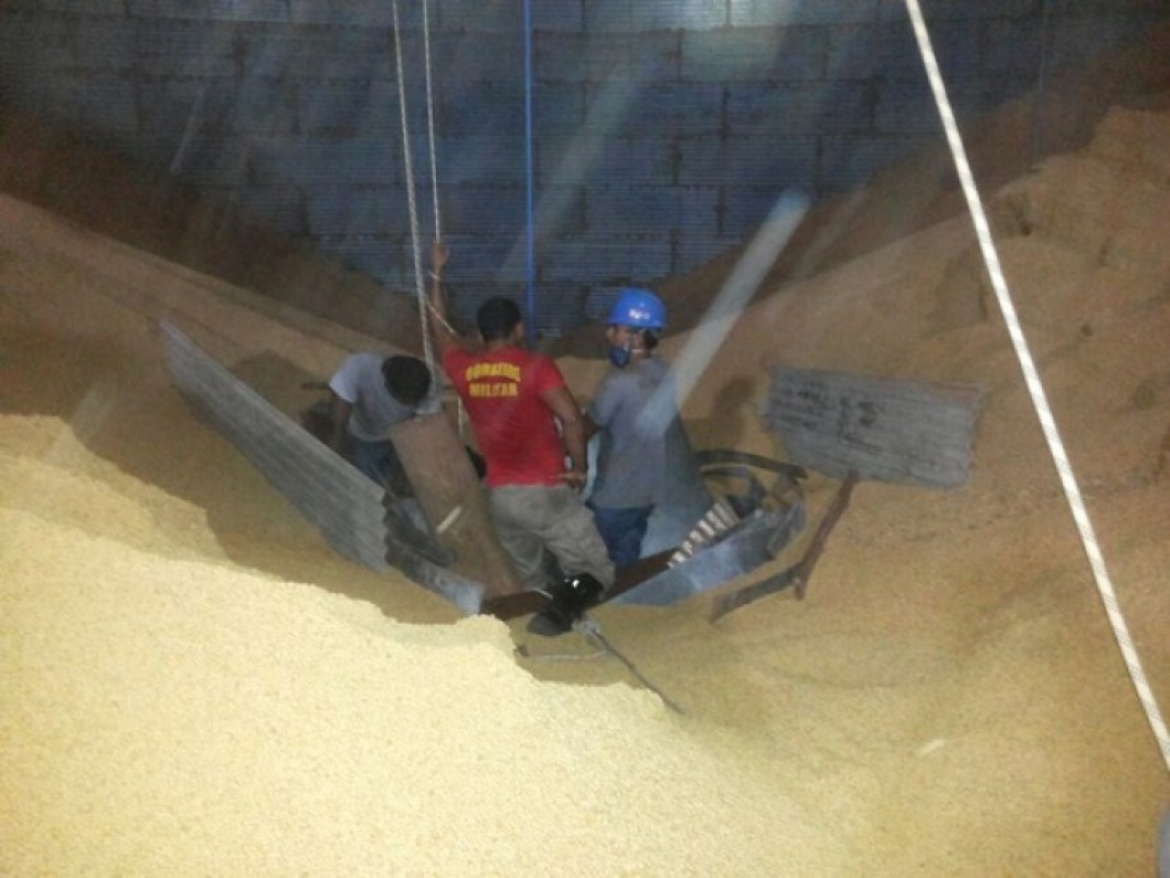 Segundo o Corpo de Bombeiros, ele fazia a limpeza da estrutura, mas os equipamentos de segurança não suportaram o peso. Ele caiu sobre os grãos de soja que estavam estocados e foi soterrado.