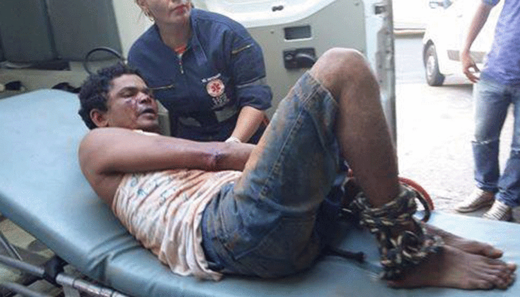 Quando a polícia chegou ao local, o acusado de cometer a tentativa de homicídio estava sendo espancado pela população. Para evitar que ele fugisse, seus familiares o amarram com cordas.