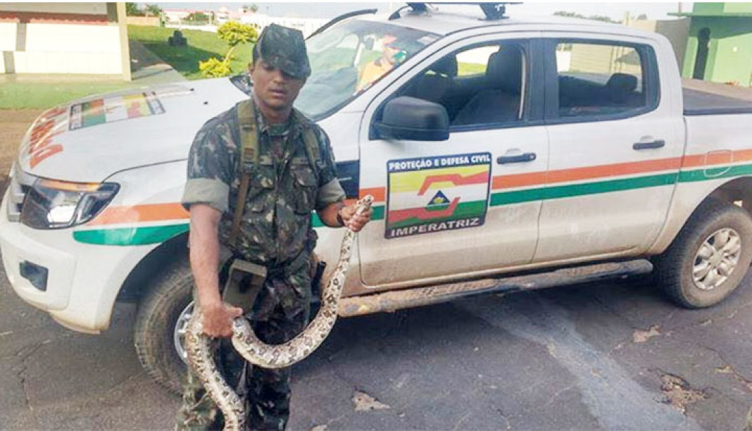 Moradores capturaram, no fim da tarde deste sábado (30), uma cobra jiboia de aproximadamente 2 metros de cumprimento, perambulando pelas margens do Rio Tocantins, em Imperatriz. Ninguém foi atacado ou ficou ferido.
