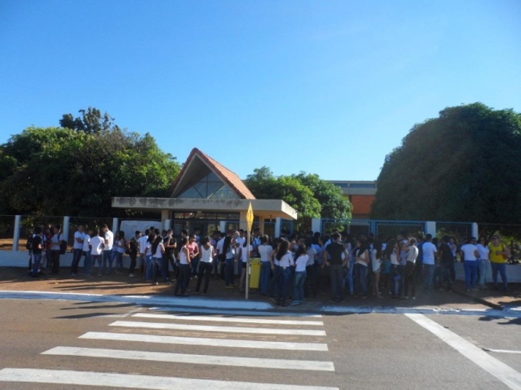 Um grupo de alunos do Colégio Militar, em Palmas, se reuniu na manhã desta quarta-feira, 12, em frente à escola para manifestar apoio a paralisação dos professores. Com cartazes e carro de som, eles protestaram contra liminar requerida pelo governo do Estado, em que o desembargador do Tribunal de Justiça do Estado (TJ) Marco Villas Boas determinou a volta imediata das atividades.