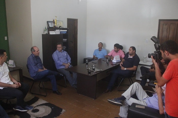 Durante encontro com os presidentes da Acicolinas e Sindicato Rural, com a presença de vereadores da cidade.