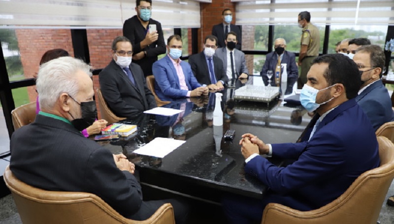 O governador em exercício do Estado do Tocantins, Wanderlei Barbosa, acompanhado de secretários de Estado, fez uma visita de cortesia na manhã desta quinta-feira, 3, ao presidente do Tribunal de Justiça do Tocantins (TJ), desembargador João Rigo Guimarães. Na oportunidade, o Chefe do Executivo Estadual reforçou a parceria com o judiciário tocantinense em prol da regularização fundiária no Tocantins, pauta prioritária na agenda do governador.
