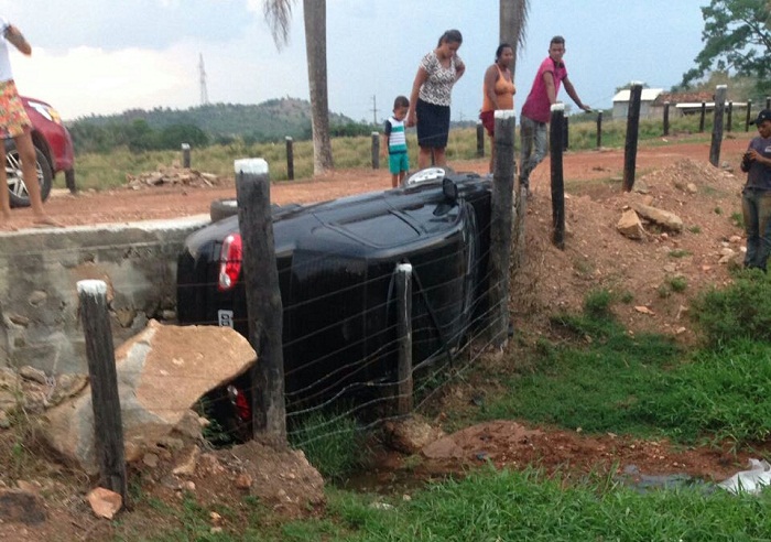 De acordo com informações da PM, ao passar sobre uma porteira sobre a ponte o motorista perdeu o controle do carro que caiu sobre um pequeno córrego.