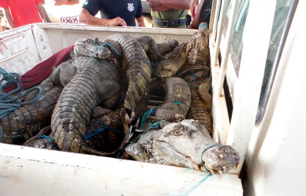 Havia 16 jacarés adultos da raça Tinga e seis camaleões, vivos e amarrados, e 45 mantas (carne salgada, pesando aproximadamente 300 quilos) de capivara, o que pressupõe a morte de mais de 20 animais. A embarcação foi levada para as instalações do Ibama, onde o material apreendido foi periciado. Os animais vivos foram levados para a fazenda Bom Jesus, zona rural do município, onde foram colocados em liberdade.
