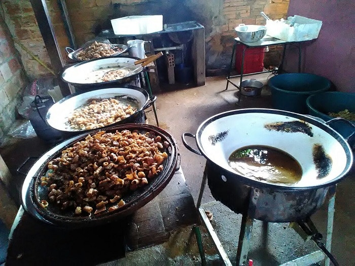 O local interditado era totalmente inapropriado para manipulação do produto, apresentava precárias condições de higiene-sanitária. Os produtos ficavam expostos ao tempo no quintal na residência, sem nenhum controle de pragas, insetos, roedores, expostos à contaminação. No ambiente onde fritava a matéria prima, as peças estavam em contato com o chão e mesmo após embaladas também eram deixadas em sacos plásticos no solo.