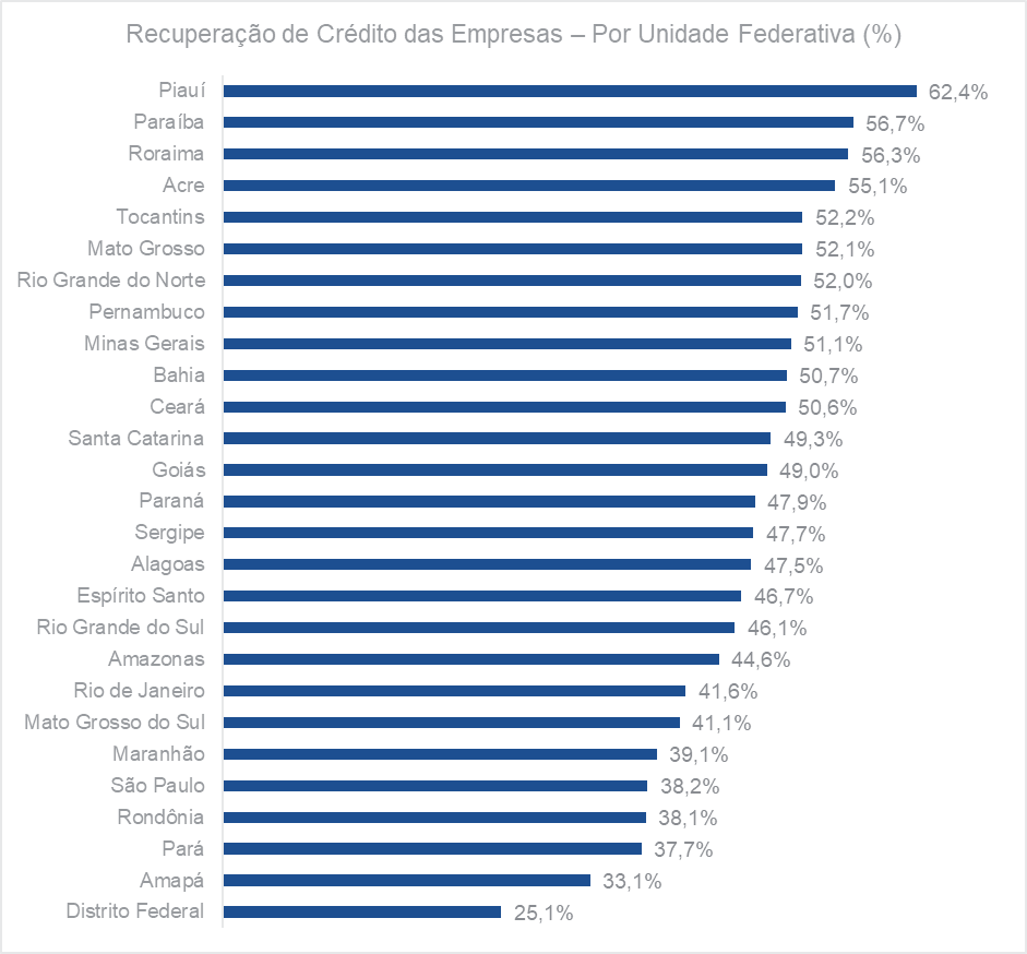 De acordo com o acumulado anual do Indicador de Recuperação de Crédito da Serasa Experian, as empresas da região Amazônica quitaram 41,4% das contas atrasadas em até 60 dias após a negativação. O recorte por Unidade Federativa (UF) revelou que Roraima teve o melhor índice (56,3%) e o Amapá, o pior (33,1%).
