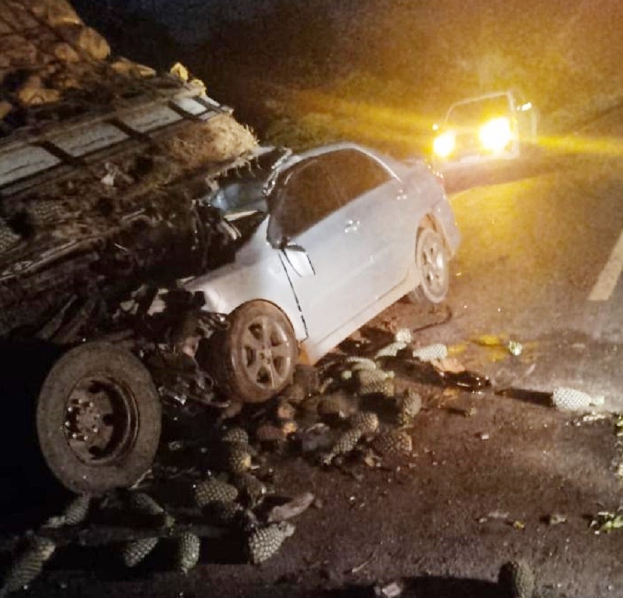 O homem estava em um Toyota Corolla e atingiu a traseira de uma caminhão carregado de abacaxi, que estava parado às margens da rodovia. Uma motocicleta também se envolveu o sinistro.