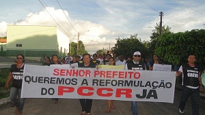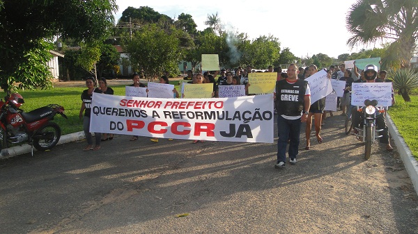 Os manifestantes clamam por respeito aos seus direitos através de faixas e cartazes com frases como “Senhor prefeito queremos a reformulação do PCCR Já”, “Greve na rua, prefeito a culpa é sua”, entre outras.