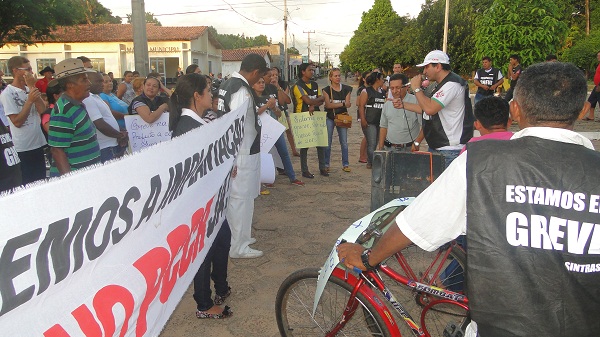 A manifestação iniciou às 17h, com grande número de servidores e familiares, simpatizantes e população em geral, que também tinha a finalidade de esclarecer para os moradores do município o porquê da greve na saúde.