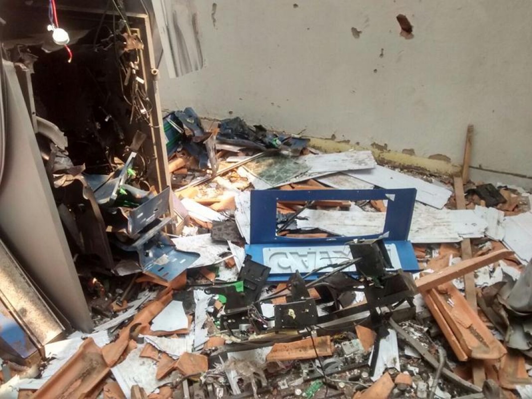 Os bandidos conseguiram abrir a porta de acesso ao local, instalaram os explosivos e fizeram a detonação. A explosão do caixa eletrônico provocou danos no interior do ponto de autoatendimento.