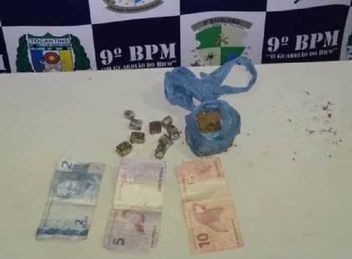O autor juntamente com a droga e o dinheiro foi apresentado na Central de Flagrantes em Araguatins. (Ascom 9 BPM)