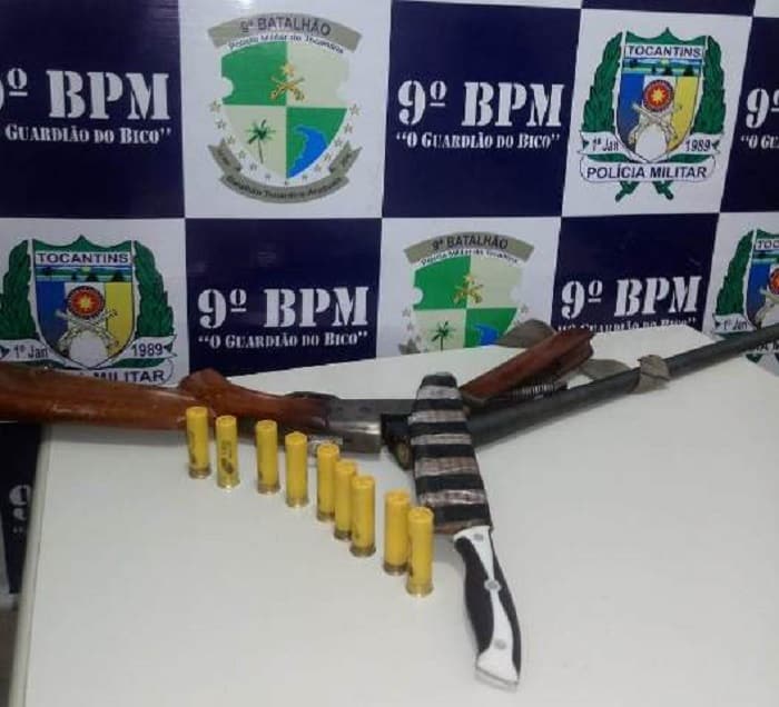 Além da espingarda e munições, a PM apreendeu também uma faca de propriedade do acusado.