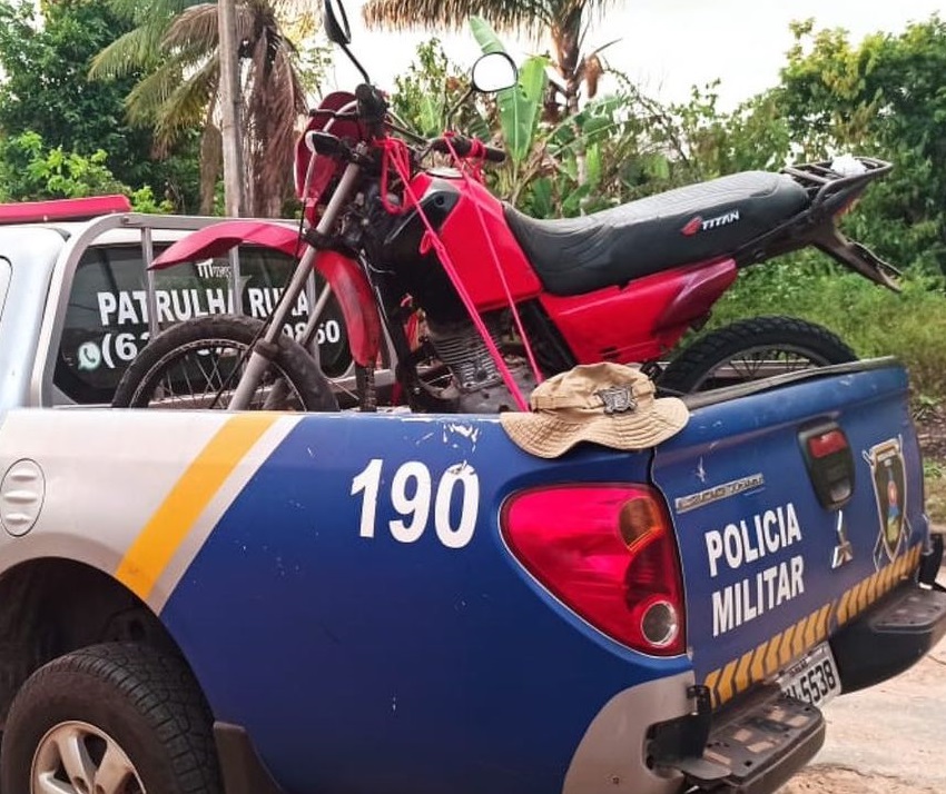 Uma motocicleta Honda XLR 125 foi apreendida pela equipe de Patrulha Rural do 9º Batalhão da Polícia Militar, durante patrulhamento na sexta-feira, 11, no povoado de Vila Tocantins, em Esperantina, no Bico do Papagaio.