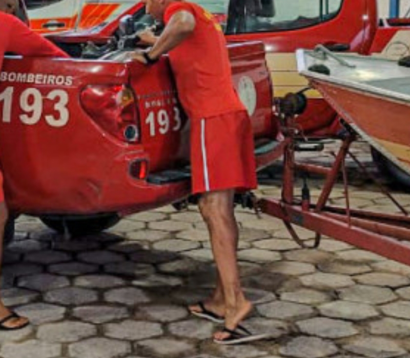 Os bombeiros militares percorrem a área onde ocorreram os afogamentos, à procura do idoso.