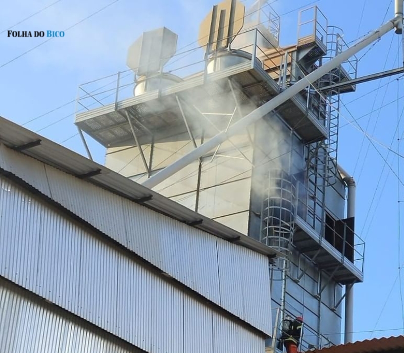 Uma equipe do 9º Batalhão do Corpo de Bombeiros foi acionada e constatou que o fogo estava concentrado na parte superior do silo de secagem, que estava carregado de milho.