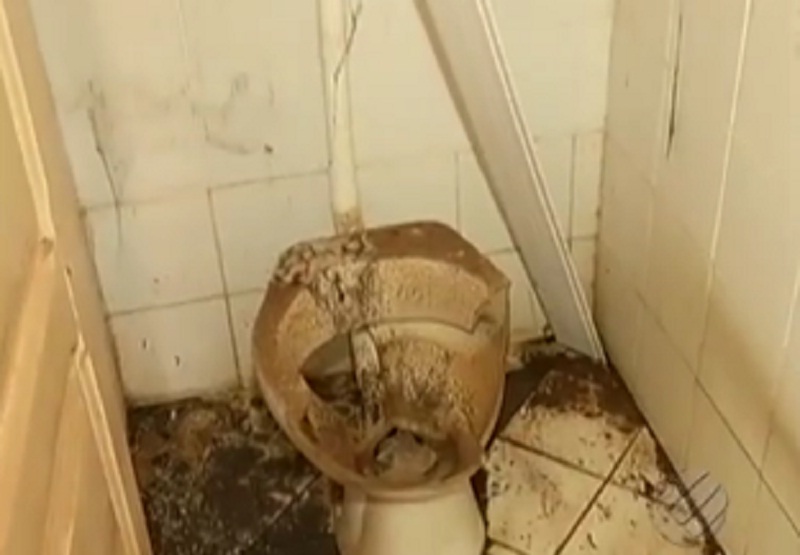 A situação de um dos banheiros na escola Almir Gabriel, onde cerca de 400 alunos do ensino médio estão matriculados, é ruim. A sala de educação física virou depósito de carteiras. A sala de informática está apenas com computadores antigos e mais carteiras amontoadas.