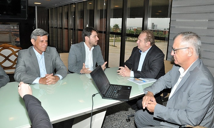 Participaram da reunião com o Governador, Fabrício Rezende, diretor de Portos e Terminais; José Geraldo Azevedo, gerente de Relações Institucionais; Denilson Marques, gerente geral de Terminais e Portos Norte; Ronaldo Soares, gerente geral de Alianças Estratégicas; e Fernando Kunsch, gerente de Relações Institucionais Norte. (Jarbas Coutinho)