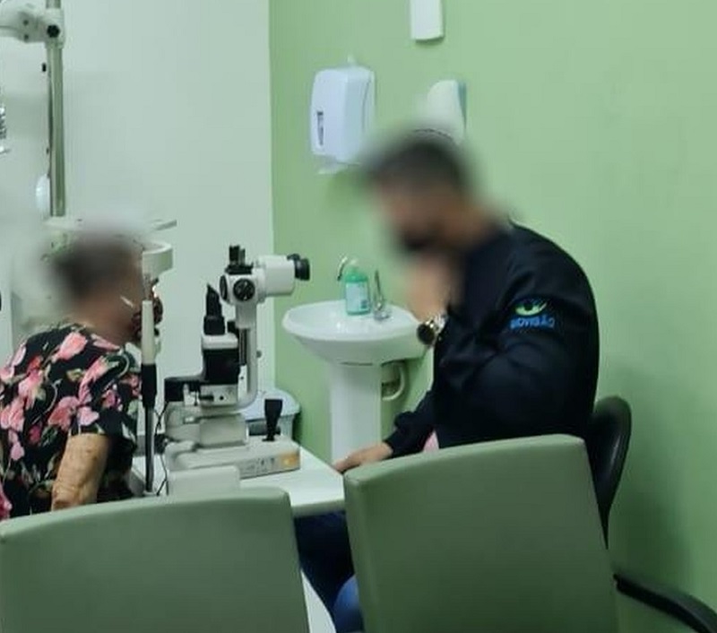 O suspeito foi preso em flagrante no momento em que realizava um atendimento médico oftalmológico em uma paciente. No local, a polícia apreendeu jalecos e carimbos utilizados por ele, mas com o nome de outro médico.