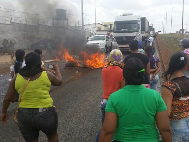 Familares de detentos do Complexo Penitenciário de Pedrinhas, em São Luís, bloquearam a BR-135 no fim da manhã deste sábado (20). As esposas dos detentos são contra as medidas tomadas pela Secretaria de Justiça e Administração Penitenciária (Sejap) para conter a crise no complexo, que envolvem transferência de presos e maior presença da policial na unidade. As imagens do protesto foram enviada a reportagem por policiais.