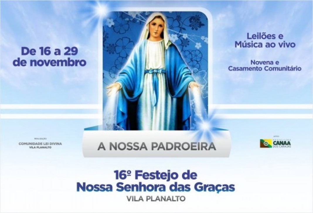 A comunidade católica da Vila Planalto, a 15Km da zona urbana de Canaã dos Carajás, começa nesta segunda-feira, 16, a programação da edição de 2015 do festejo em louvor a Nossa Senhora das Graças, que é padroeira da comunidade.