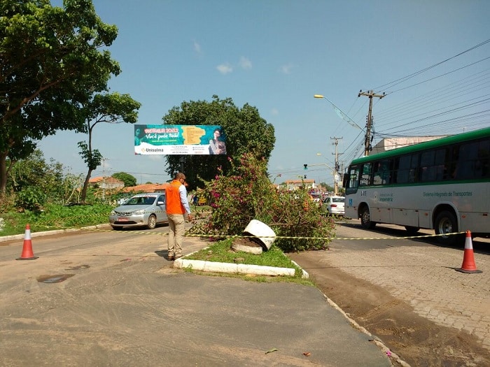 As fortes chuvas que caíram sobre Imperatriz na madrugada desta quarta-feira, 29, causaram quedas de árvores e fiação elétrica por toda a cidade, além do desabamento do teto de um posto de combustível que fica às margens da Avenida JK. Para amenizar os prejuízos, equipes da Superintendência Municipal de Proteção e Defesa Civil, em parceria com a Superintendência de Limpeza Pública, percorrem áreas atingidas pela chuva, com a realização de poda de árvores e retirada de entulhos que ainda ameaçam as vias públicas da cidade.