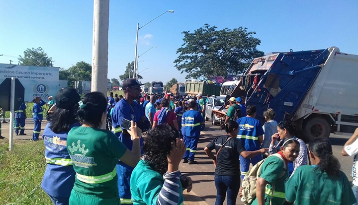 Funcionários de limpeza de Imperatriz, no Maranhão, fizeram uma manifestação na manhã deste domingo, 28, interditando a rodovia BR-010.