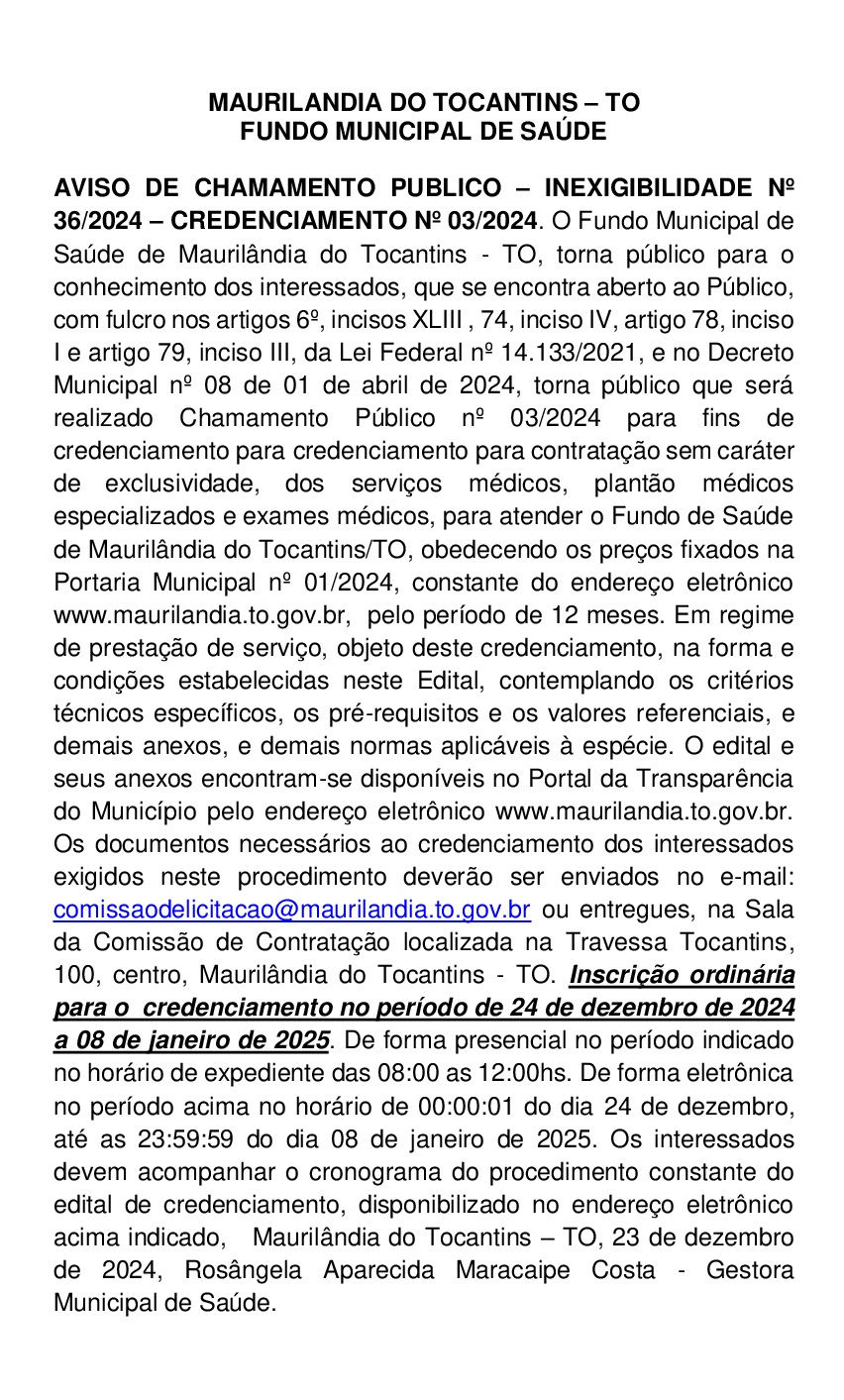 Publicidade Publicidade Geral FUNDO MUNICIPAL DE SAÚDE DE MAURILÂNDIA DO-TO – AVISO DE CHAMAMENTO PÚBLICO – INEXIGIBILIDADE Nº 36/2024 – CREDENCIAMENTO Nº 03/2024. By Folha do Bico 23 de dezembro de 2024 0 38 Share WhatsAppPrintTelegramFacebookTwitterCopy URL Folha do Bico Noticias Relacionadas PREFEITURA DE MAURILÂNDIA DO TO – ATO AVISO DE CONCORRÊNCIA ELETRÔNICA Nº 06/2025 – REPUBLICAÇÃO 2 de dezembro de 2025 PREFEITURA DE MAURILÂNDIA DO TO – ATO AVISO DE CONCORRÊNCIA ELETRÔNICA Nº 05/2025 – REPUBLICAÇÃO 2 de dezembro de 2025 PREFEITURA DE MAURILÂNDIA DO TO – ATO AVISO DE CONCORRÊNCIA ELETRÔNICA Nº 04/2025 – REPUBLICAÇÃO 2 de dezembro de 2025 Share WhatsAppPrintTelegramFacebookTwitterCopy URL Previous articleMinistro dos Transportes visita local do desabamento da Ponte JK e anuncia medidas emergenciaisNext articleFUNDO MUNICIPAL DE SAÚDE DE MAURILÂNDIA DO – TO – AVISO DE CHAMAMENTO PUBLICO – INEXIGIBILIDADE Nº 37/2024 – CREDENCIAMENTO Nº 04/2024. - Advertisement - - Advertisement - Ultimas noticias AUGUSTINÓPOLIS: Vigilante de abrigo é preso suspeito de abusar duas crianças 4 de dezembro de 2025 SÃO MIGUEL: Lixão é fechado e passa a ter acesso controlado sob novas diretrizes ambientais 4 de dezembro de 2025 ARAGUATINS: Insatisfeitos, Abmael, Chico Moura e Rafael Oliveira passam a votar com a oposição e complicam gestão Aquiles 4 de dezembro de 2025 ARAGUATINS: Com voto decisivo e comando da oposição, Airton se torna principal contraponto à gestão Aquiles 4 de dezembro de 2025