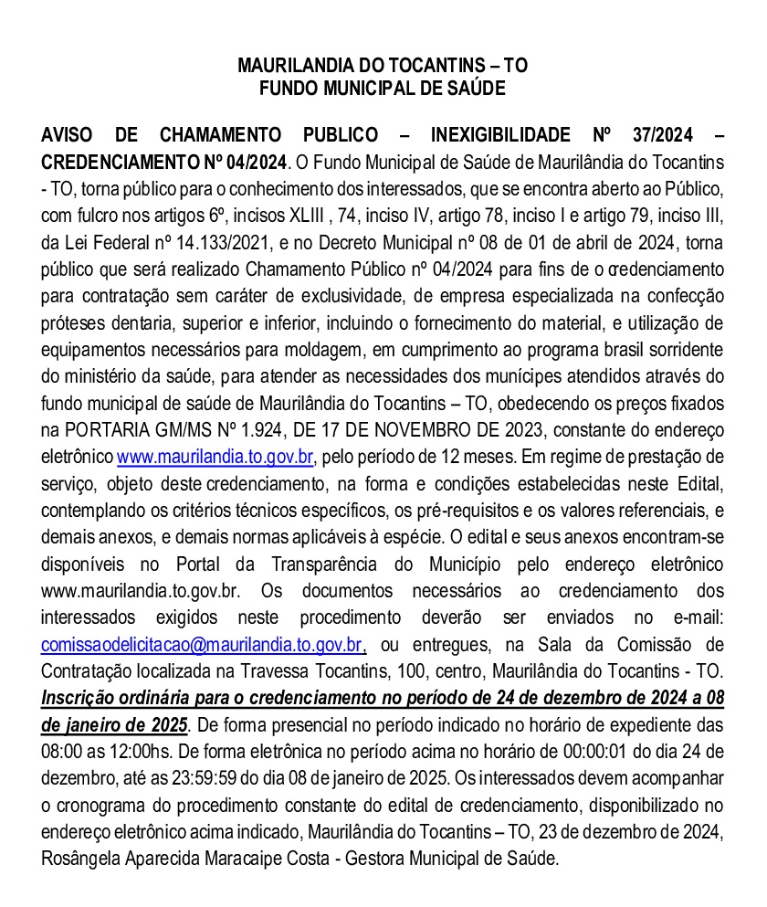 Publicidade Publicidade Geral FUNDO MUNICIPAL DE SAÚDE DE MAURILÂNDIA DO – TO – AVISO DE CHAMAMENTO PUBLICO – INEXIGIBILIDADE Nº 37/2024 – CREDENCIAMENTO Nº 04/2024. By Folha do Bico 23 de dezembro de 2024 0 32 Share WhatsAppPrintTelegramFacebookTwitterCopy URL Folha do Bico Noticias Relacionadas PREFEITURA DE MAURILÂNDIA DO TO – ATO AVISO DE CONCORRÊNCIA ELETRÔNICA Nº 06/2025 – REPUBLICAÇÃO 2 de dezembro de 2025 PREFEITURA DE MAURILÂNDIA DO TO – ATO AVISO DE CONCORRÊNCIA ELETRÔNICA Nº 05/2025 – REPUBLICAÇÃO 2 de dezembro de 2025 PREFEITURA DE MAURILÂNDIA DO TO – ATO AVISO DE CONCORRÊNCIA ELETRÔNICA Nº 04/2025 – REPUBLICAÇÃO 2 de dezembro de 2025 Share WhatsAppPrintTelegramFacebookTwitterCopy URL Previous articleFUNDO MUNICIPAL DE SAÚDE DE MAURILÂNDIA DO-TO – AVISO DE CHAMAMENTO PÚBLICO – INEXIGIBILIDADE Nº 36/2024 – CREDENCIAMENTO Nº 03/2024.Next articlePREFEITURA MUNICIPAL MAURILÂNDIA DO – TO – AVISO DE CHAMAMENTO PUBLICO – INEXIGIBILIDADE Nº 38/2024 – CREDENCIAMENTO Nº 05/2024 - Advertisement - - Advertisement - Ultimas noticias AUGUSTINÓPOLIS: Vigilante de abrigo é preso suspeito de abusar duas crianças 4 de dezembro de 2025 SÃO MIGUEL: Lixão é fechado e passa a ter acesso controlado sob novas diretrizes ambientais 4 de dezembro de 2025 ARAGUATINS: Insatisfeitos, Abmael, Chico Moura e Rafael Oliveira passam a votar com a oposição e complicam gestão Aquiles 4 de dezembro de 2025 ARAGUATINS: Com voto decisivo e comando da oposição, Airton se torna principal contraponto à gestão Aquiles 4 de dezembro de 2025