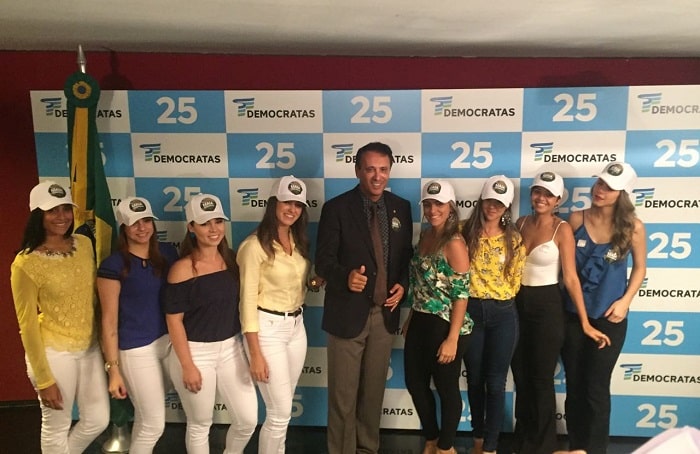 Gaguim levou oito garotas, as quais chamava de “gaguetes”. Elas usavam bonés de “Maia presidente”.