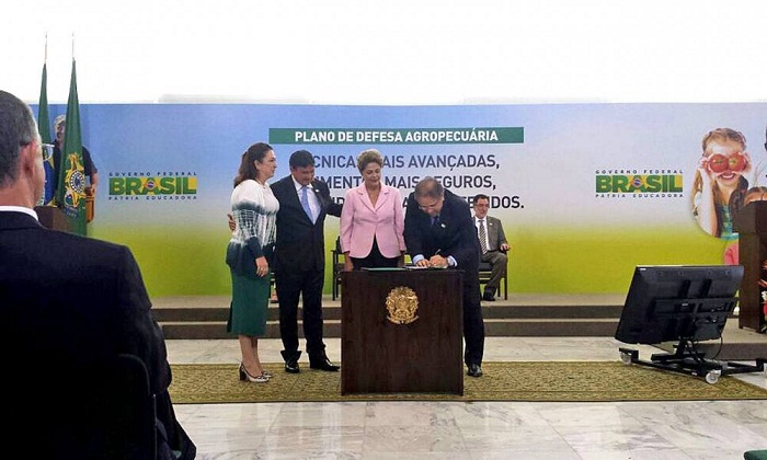 Ao lado do governador do Piauí, Wellington Dias, da ministra da Agricultura, Pecuária e Abastecimento, Kátia Abreu, e da presidenta Dilma Rousseff, o governador Marcelo Miranda assinou o Decreto que cria o Plano de Desenvolvimento Regional Sustentável da Região do Matopiba. A assinatura aconteceu na manhã desta quarta-feira, 6, no Palácio do Planalto, durante evento de lançamento do Plano Nacional de Defesa Agropecuária e outros sete atos que impulsionam o crescimento do setor.