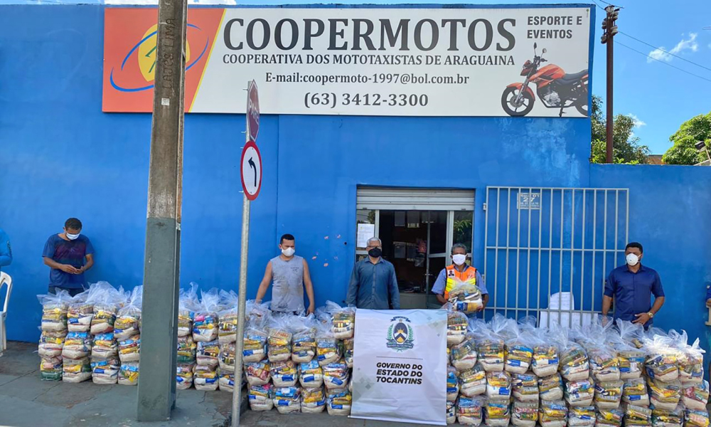 Por conta dos impactos da pandemia da Covid-19 em diversos segmentos da sociedade, o Governo do Tocantins, por meio da Secretaria do Trabalho e Desenvolvimento Social (Setas), entregou na manhã deste sábado, 9, cerca de 500 cestas básicas aos mototaxistas de Araguaína. A categoria foi representada pelo Sindicato dos Mototaxistas, Motoboys e Moto Frete (Sindmoto) e pela Cooperativa de Mototaxistas (Coopermoto).