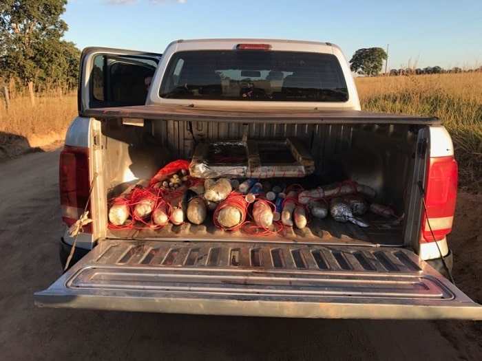 Segundo a PM, os reféns foram soltos logo o grupo seguiu por uma estrada vicinal. Após patrulhamento foi localizado um caminhão baú com explosivos e dinheiro a cidade de Cariri. Também foi localizada duas caminhonetes.