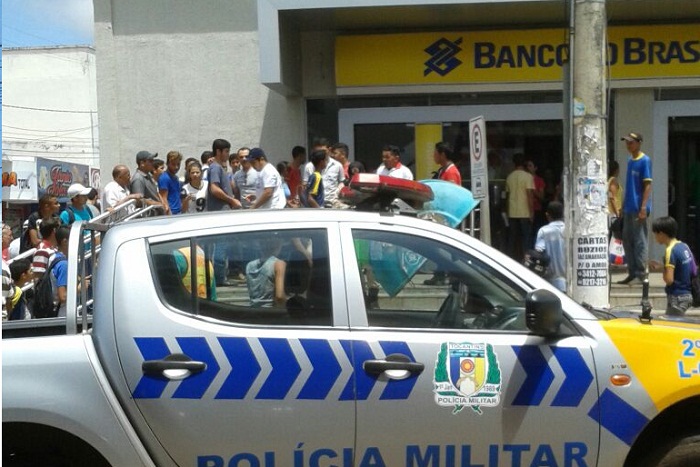 Durante a ação, o homem teria reagido ao roubo e foi baleado. Ao ser baleada, a vítima teria corrido para a rua e caído em frente ao banco, que fica na Avenida Cônego João Lima.